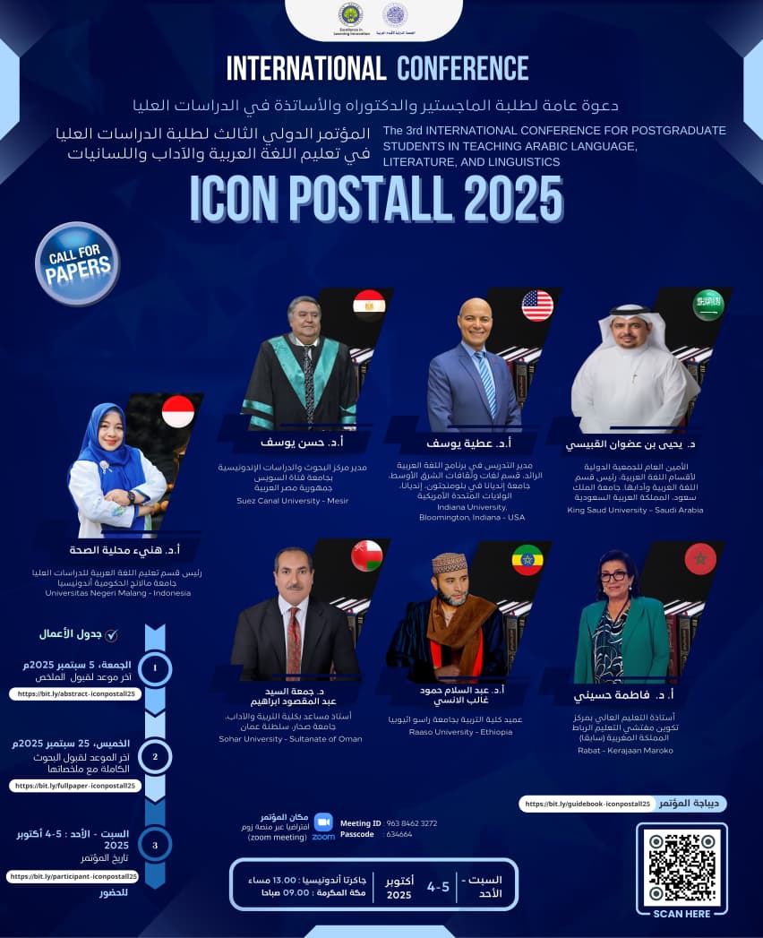 Vol. 3 No. 1 (2025): PROCEEDING OF INTERNATIONAL CONFERENCE FOR POSTGRADUATE STUDENTS IN TEACHING ARABIC LANGUAGE, LITERATURE, AND LINGUISTICS (ICON-POSTALL)